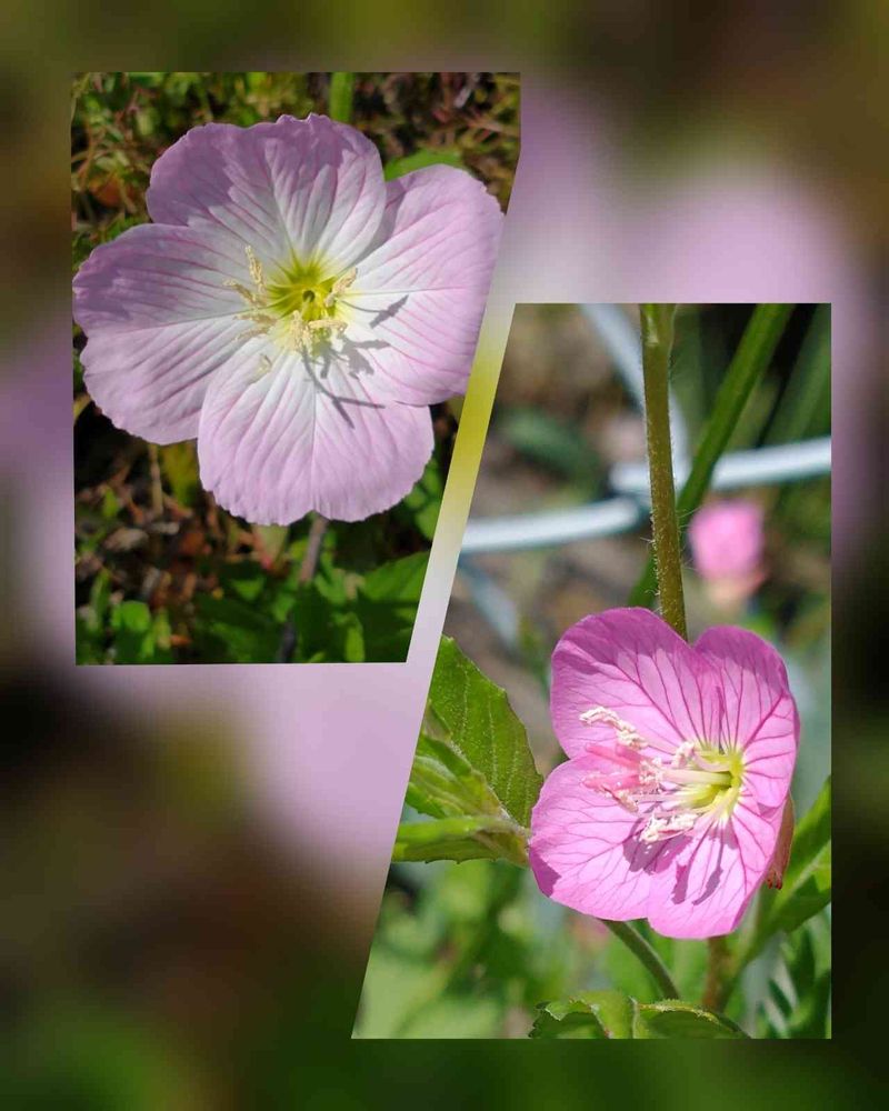 左 昼咲き月見草(アカバナ科・マツヨイグサ属) 淡いピンクがやさしげ💓