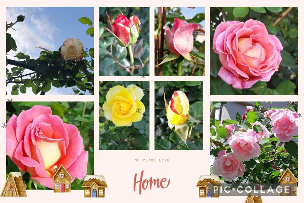 こんばんは😃🌃2枚目です。お多福ガ-デンの薔薇🌹と、↘️右下は、ガ-デン仲間の家の薔薇🌹です。スパ二ッシュビュウティ(舞踏会に、行く女性のドレスが、ヒラヒラするのと、女性のうきうき😃🎶感を表してるそうです💓😍。この薔薇💗も、とても可愛いくて、ガ-デンにも、挿し木して植えてますが、まだ、もう少し大きくなるまで、待とうと、思って、仲間の、薔薇💗🌹を、写させて貰いました。この写真も、好きなので、見てくださいね🎵。