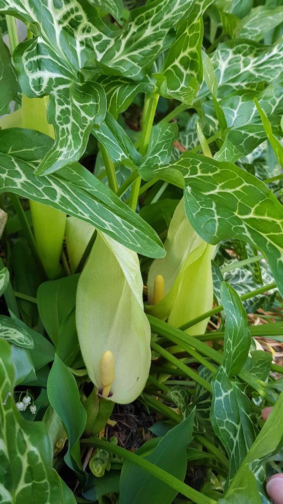カラジウム、もとい、アラム•イタリカムが花を咲かせてました。