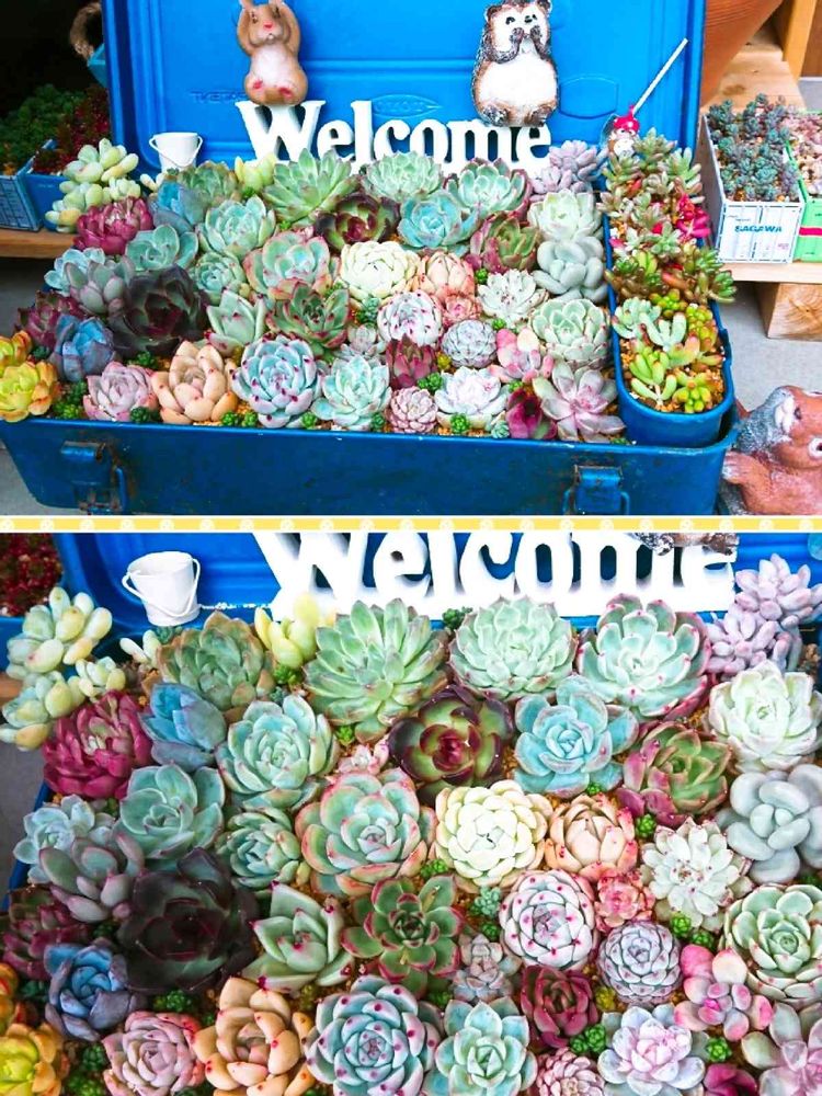 ブルーの工具箱🧰が可愛い寄せ植えさん達をとてもステキに引き立ててくれていますね☺️