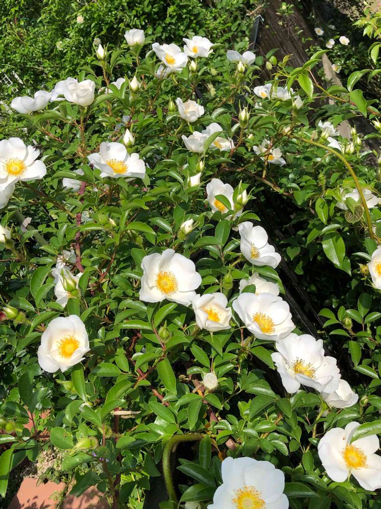この頃良く皆さんのpicで見せて貰うけど お花は一重で可愛いね 白に黄色い蘂が好き🥰元気なんだね😄