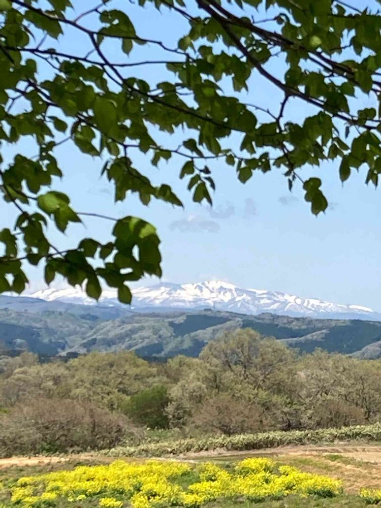 菜の花と雪山、まだこんな景色が見られるのですネ〜🌼