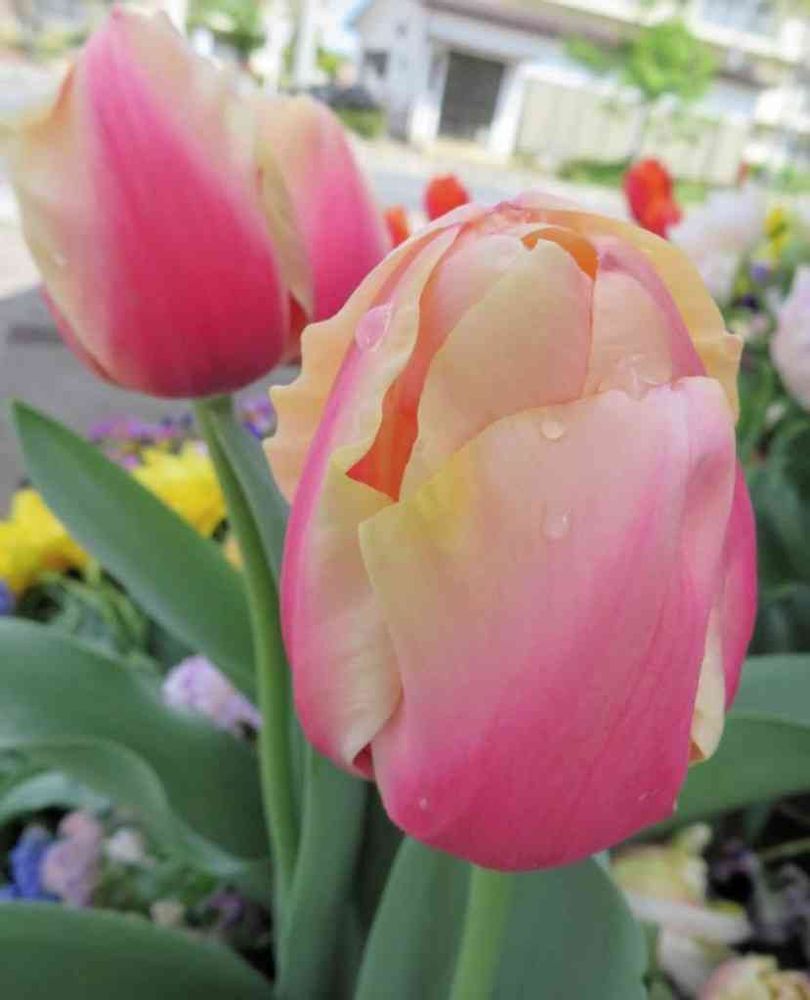 日曜ビタミンカラー♪~😍🤗チューリップ・マリットです🥰ふっくら丸みを帯びた花型と、スウィートな色彩が気に入ってます💛🧡🌷💕😍