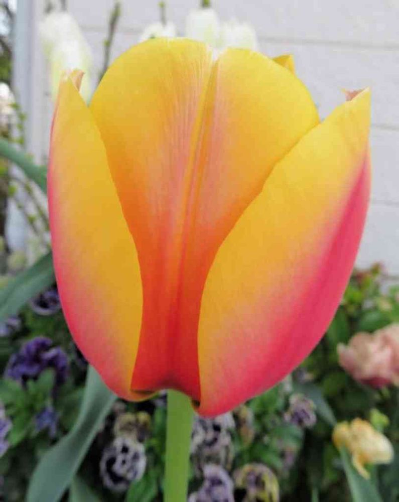 日曜ビタミンカラー🎶チューリップ・ワールドピースです🥰🧡💛🌷💕😍前出のマリットと同じ系統の色彩乍ら、こちらはくっきりとしていて、印象が全く違うのが面白いですよね~😃