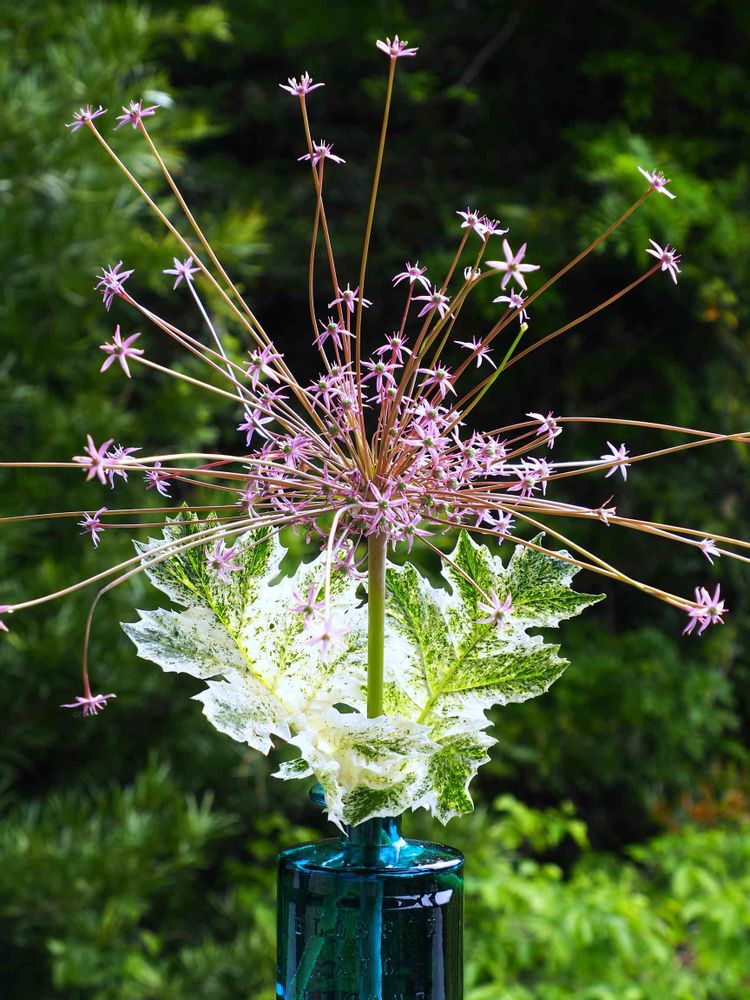 アリウムに合わせるために緑が多くなってきた葉を拝借✂︎しました。
