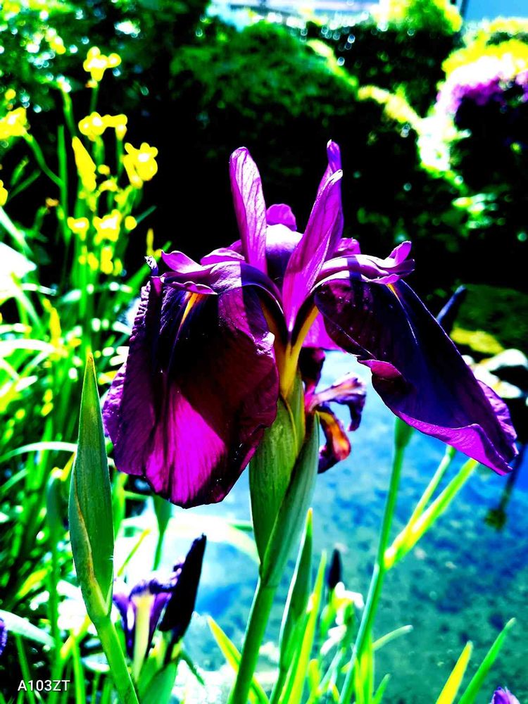 出勤途中で、井上公園の瓢箪池の畔に咲く、菖蒲の花を、撮りました。