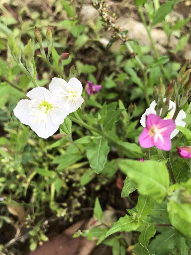 いつも見かけるアカバナユウゲショウのお隣に今朝は初めてシロバナを見かけました🤍✨👀