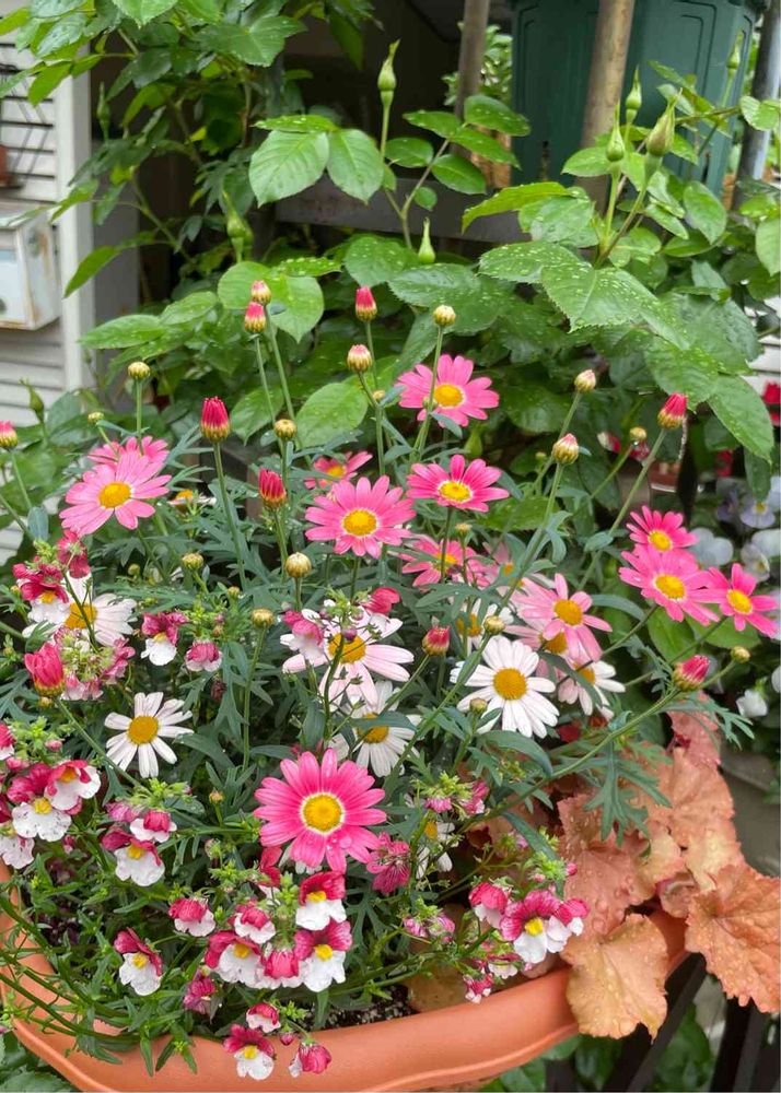 雨でサンサシアの花が落ちたのをマーガレットが補うようにモリモリになってきました😆🌸💕