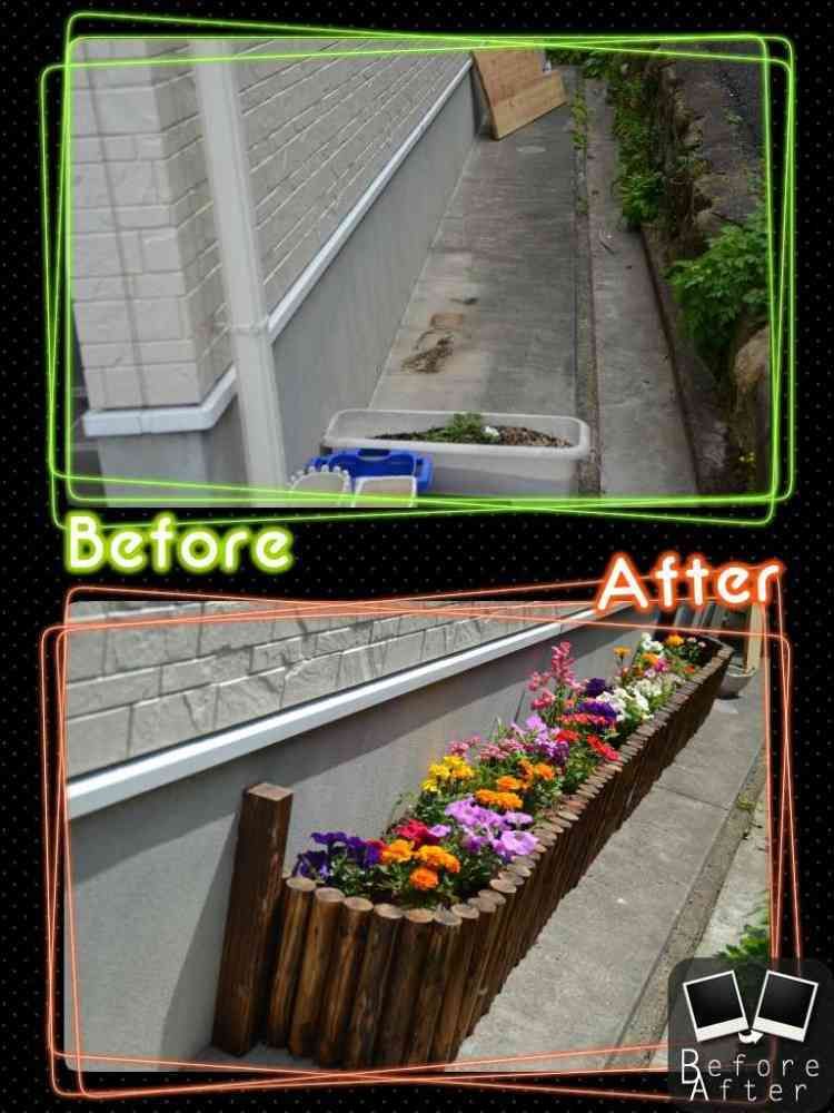 花壇作りました(^o^)お花も植えて家が明るくなりました♪近くに行くと花の匂いが〜(^^)すくすく育ってくれるか楽しみです☺