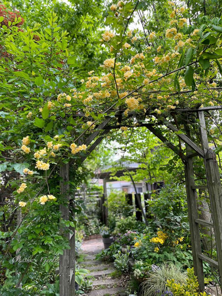素敵な黄色いモッコウバラのアーチの誕生✨
