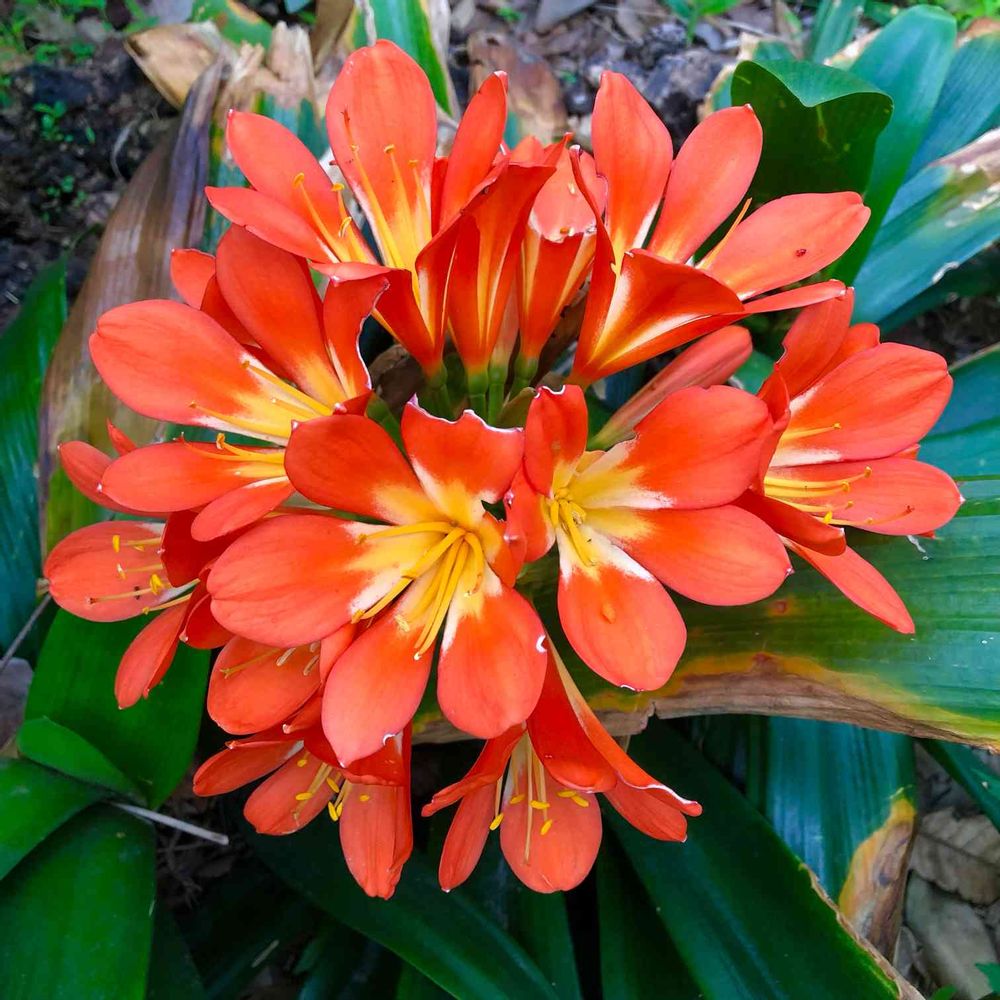 近所の高齢者介護施の静かな庭で、一際鮮やかに咲いていた君子蘭。