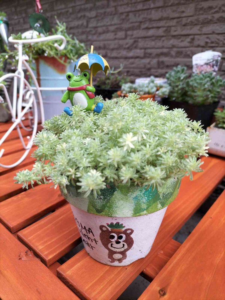 🧸ちゃんのリメ鉢の緑が引き立ててるね