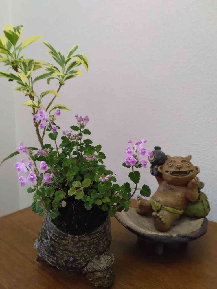 斑入りレンギョウにピンクのタツナミソウ素敵過ぎます😵