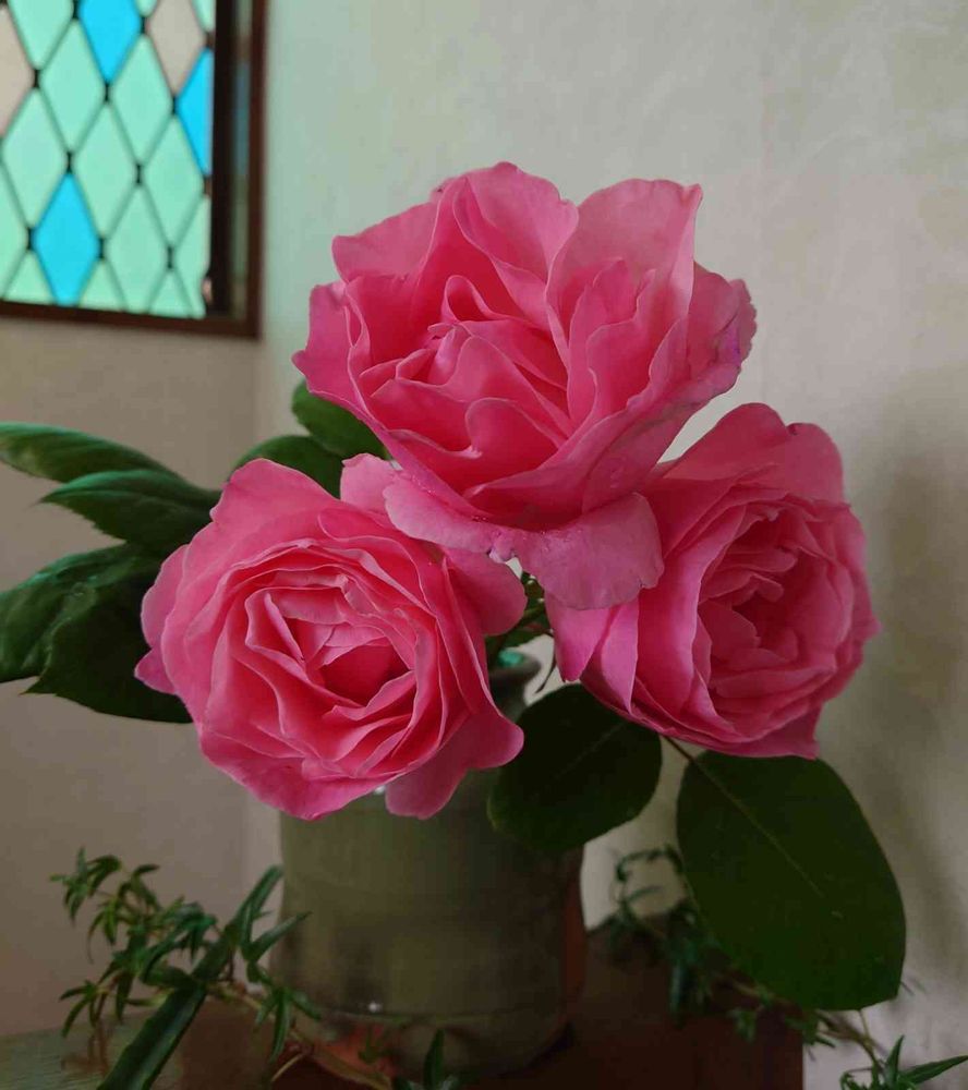 雨が 思いのほか強く降っているので花瓶に飾りました。