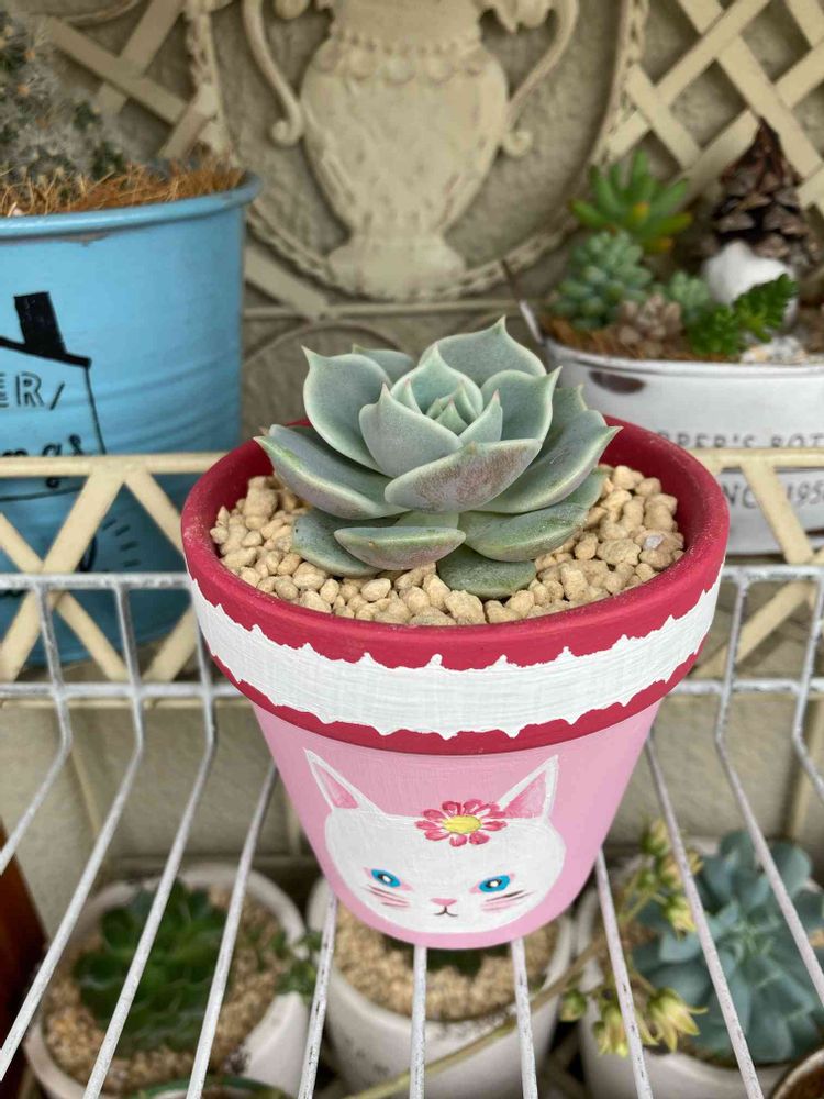 リメ鉢のネコちゃんと、多肉のローラちゃん💕💕とってお似合いよぉ〜🤗