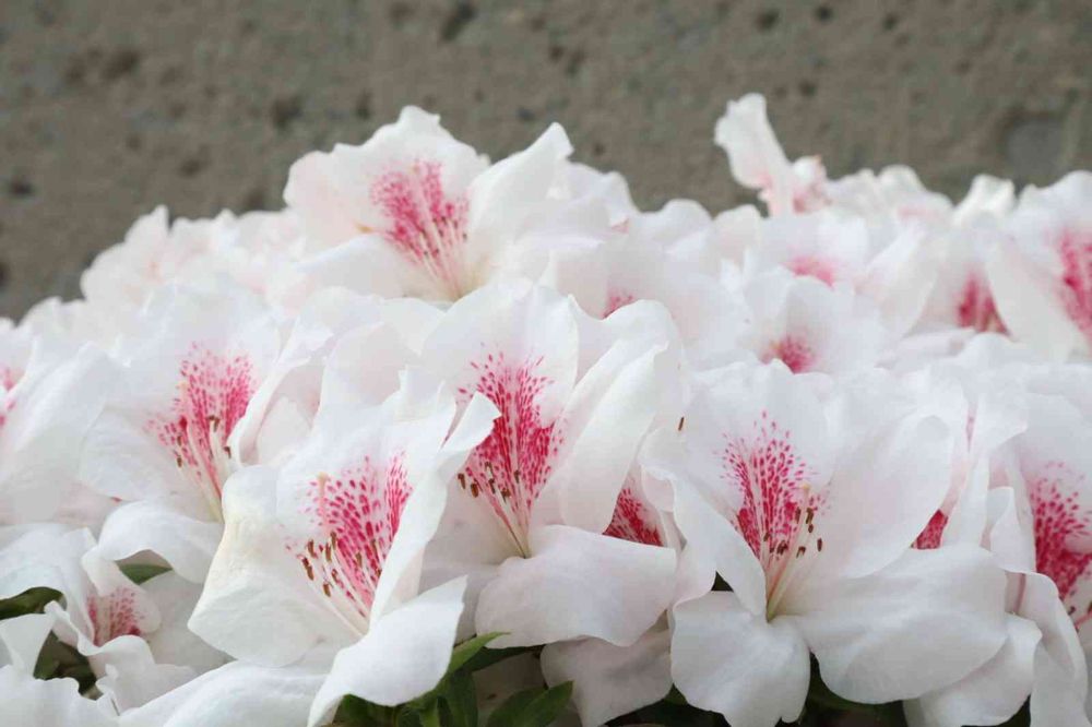 これはアザレアで、「ステラ・マリス」という品種だったと思います。白に濃いピンクの花で、これも優しい印象ですね。