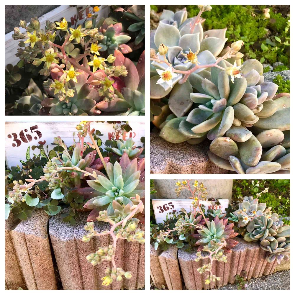 地植えにして、ちょうど1年くらいの多肉さん達。挿し芽から枯れずに成長してくれてお花まて咲きだしたꕤ୭*ꕤ୭*ꕤ୭*
