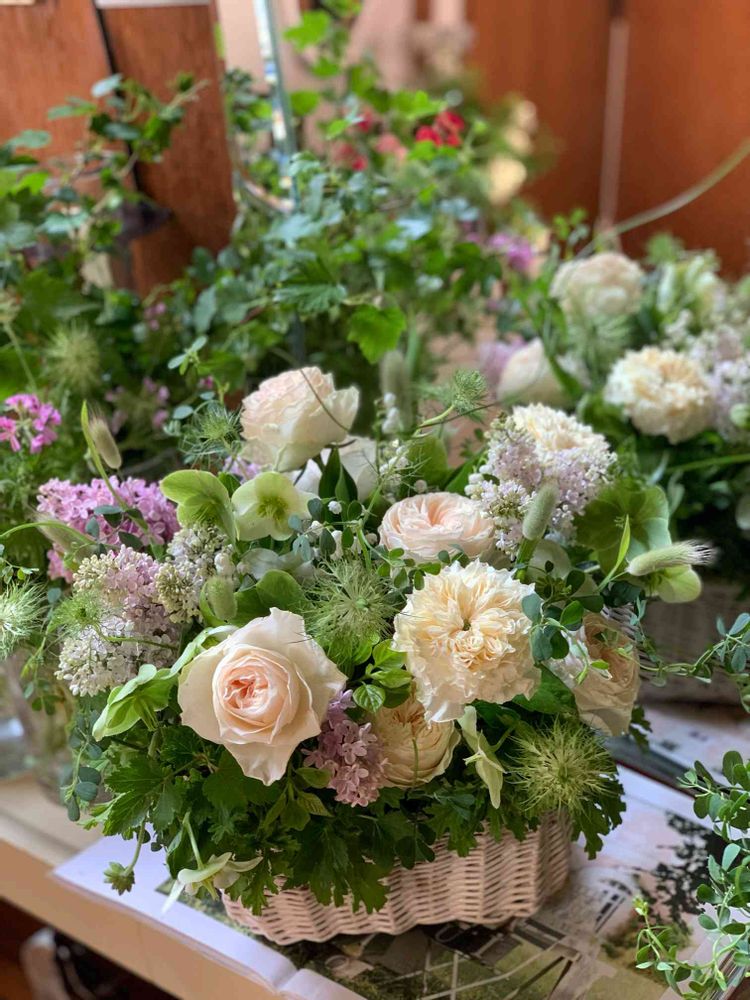 今日はスズランの日。このアレンジにもいっぱい入ってる🌿