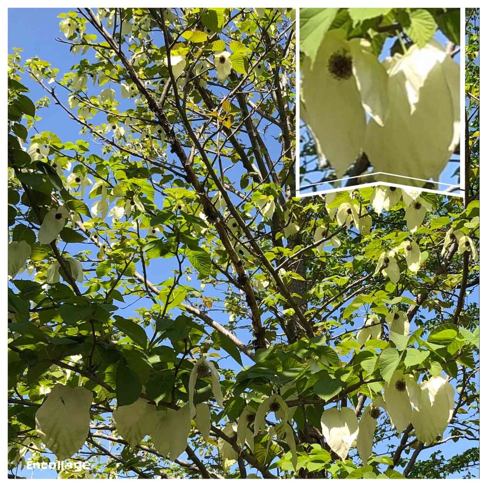 実物は初めてでしたが本当に白いハンカチがたくさん木に吊るしてあるように見えます でもこれは花弁ではなくて2枚の苞なんですね