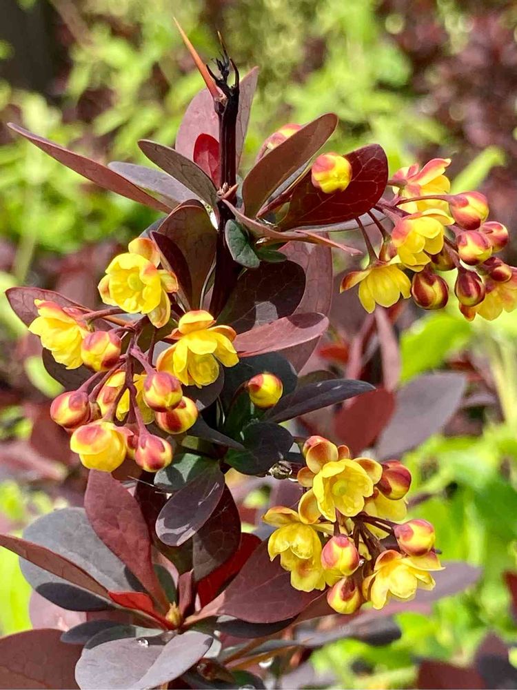 緑色の葉っぱのメギも、お花は同じ黄色でしたよ😊
