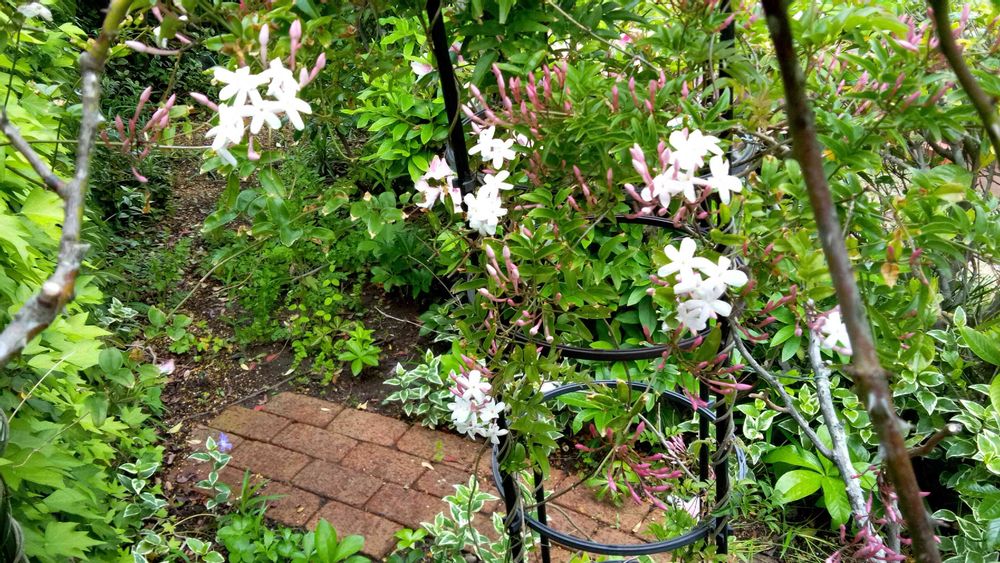 ハゴロモジャスミンが開きはじめました。