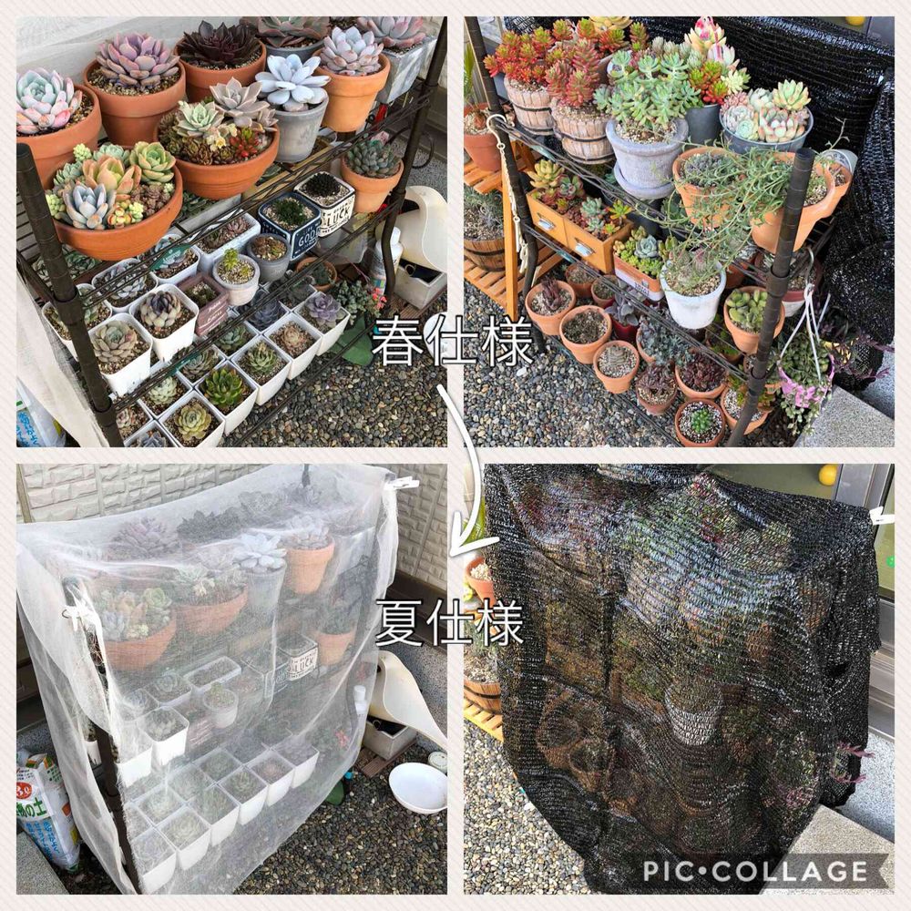 先日、夏に向けて我が家の屋外多肉棚に夏対策を施しました♫
