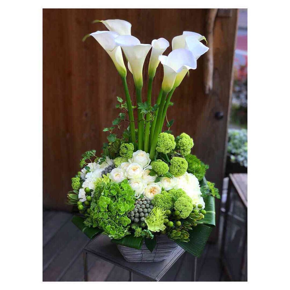 美容室のOPEN㊗️に白とグリーンのアレンジメント☺️オシャレにスタイリッシュに仕上げました🤗