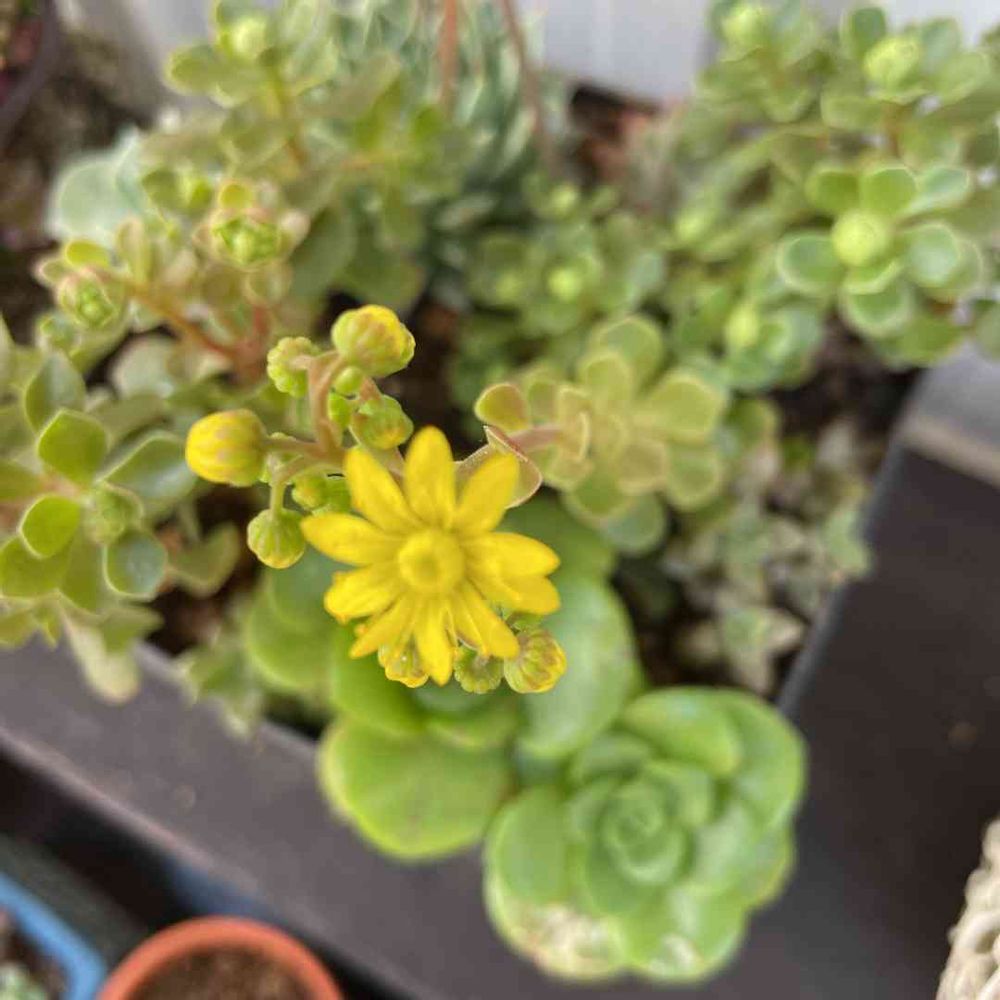 お⁉︎アエオニウムチョコチップに花が‼︎🌼かわいい💕