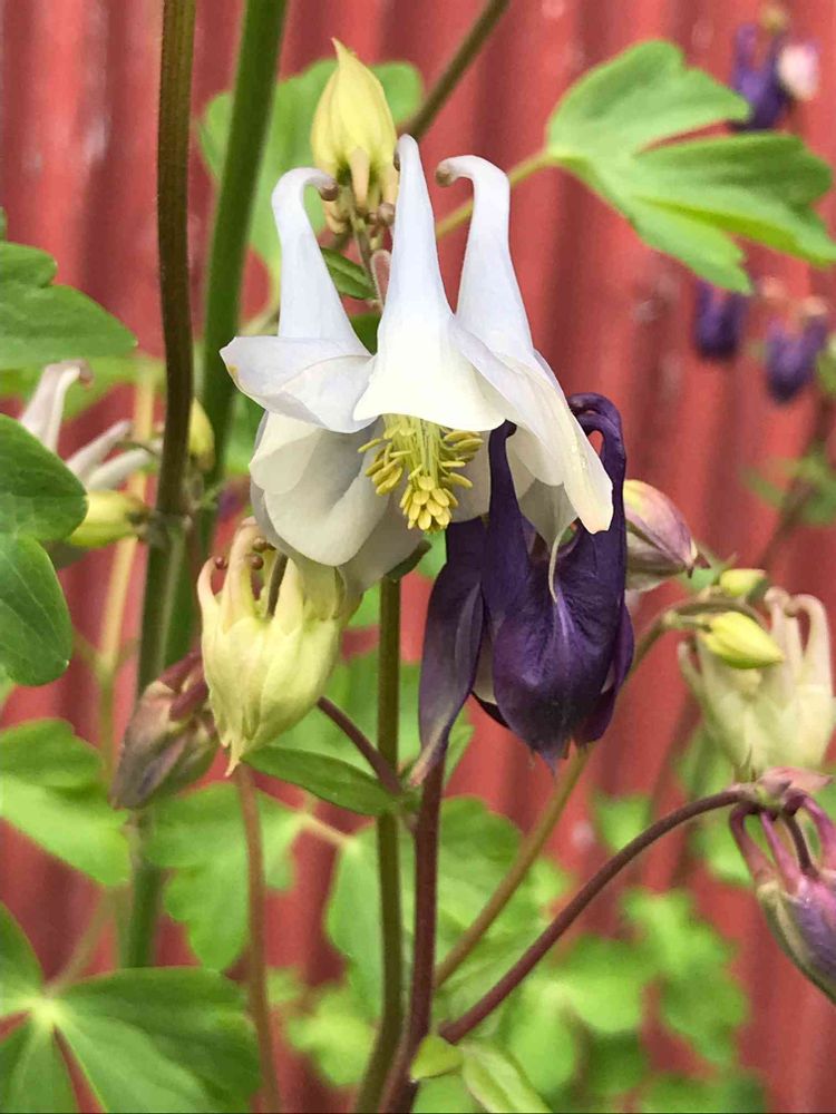 まわりには、紫のと、白と紫のと、たくさんオダマキさんが咲いてます。