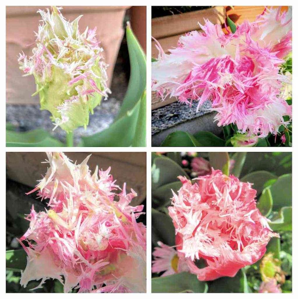 前出の、チューリップ・サクラフブキです(*^^*)咲き始めから開き切るまでをコラージュにしてみました🎶🌷💕🌸😍