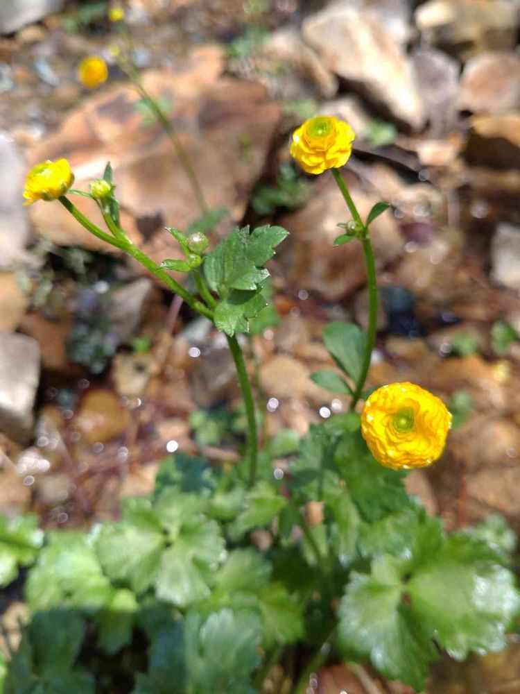 山の中だから自生なのかなぁ?🤔運ばれてきたのかなぁ? 花は、ベビーラナンキュラスだね😁