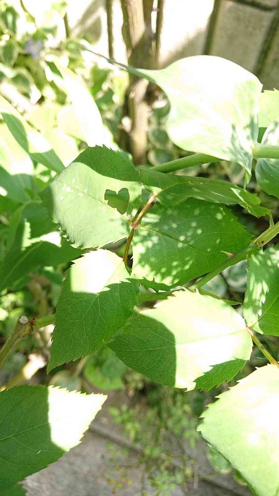 ヤモリがいるから、農薬使いたくなくて、スプレーしてないから、薔薇の葉っぱが虫食いだらけなんやけど、ハートの形に虫食ってくれたから、結果オーライかな?と😁👌