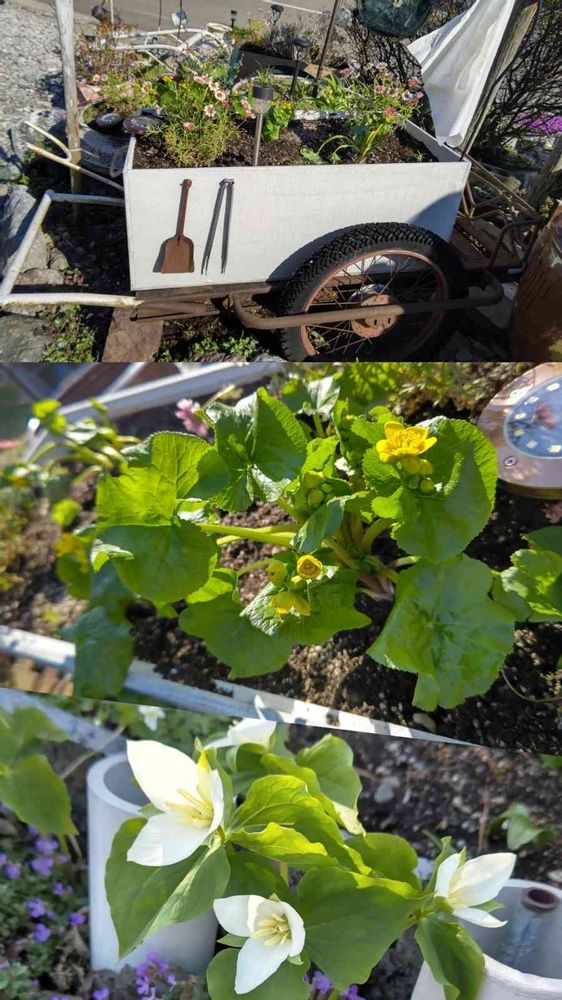 リヤカーや古いコーラの木箱等を使って可愛くお庭作りしてるんです🎵