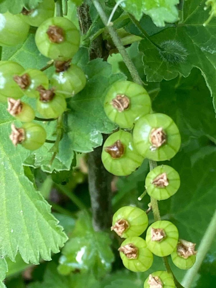 我が家のグズベリーも…何だか風に飛ばされた洗濯物👕が引っかかってるなぁ…🙄と思って取りに行ったら、透き通るグリーンの輝き✨を見つけました!😁見た目は今が1番美味しそうですけど…黒くなってからが食べ頃…というのがなんとも、、😂