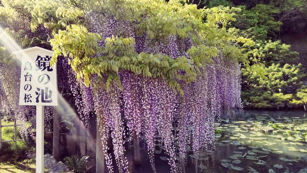 鏡の池の藤、お隣の松素敵でした🥰