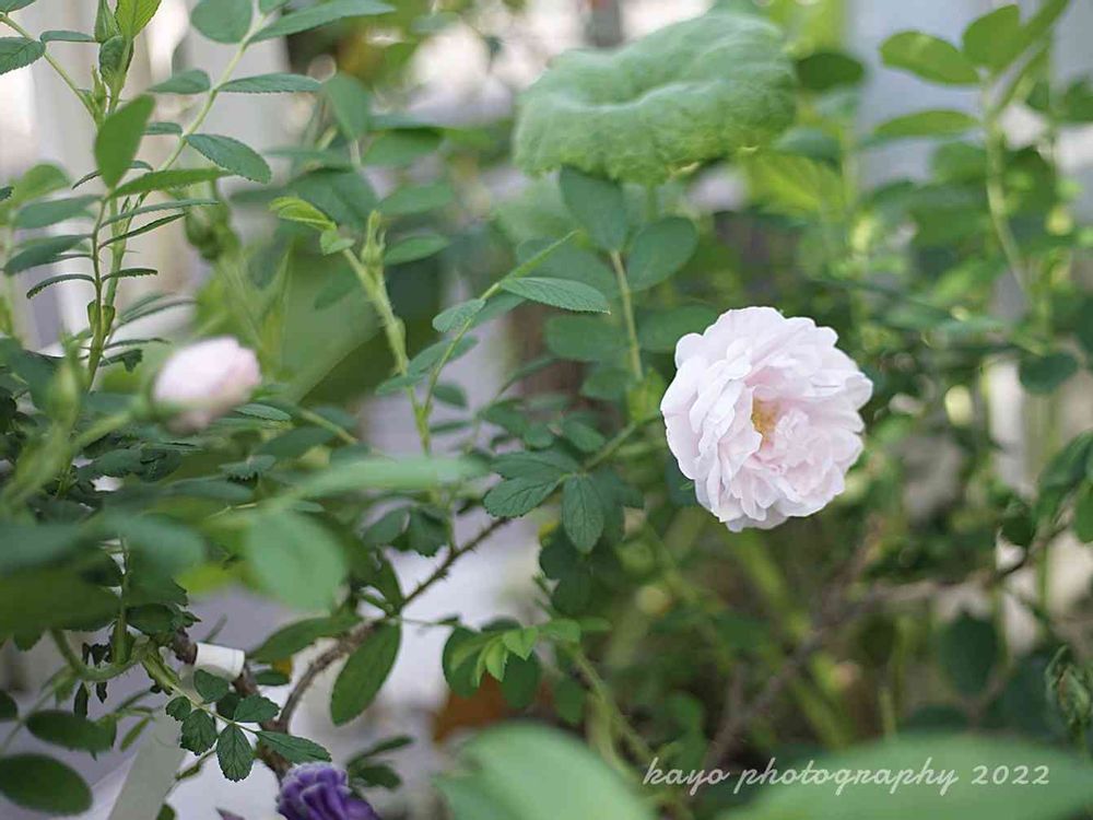 透きとおるような淡いピンクがとても可愛い。ルゴサ好きの私にはたまらないバラの1つです。