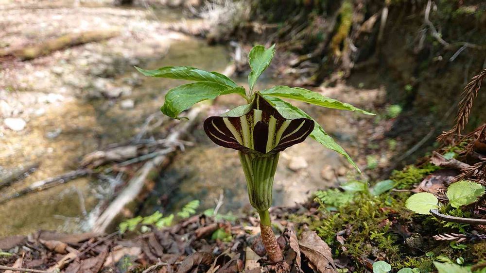 アムールテンナンショウの亜種であるヒロハテンナンショウの変種。芦生の森(芦生研究林)を中心とした京都、滋賀、福井の芦生原生林にのみ分布している貴重な植物らしい。半日かけて由良川の源流まで登る道中で、1つしか見つけられませんでした。出会えて良かったです☺️