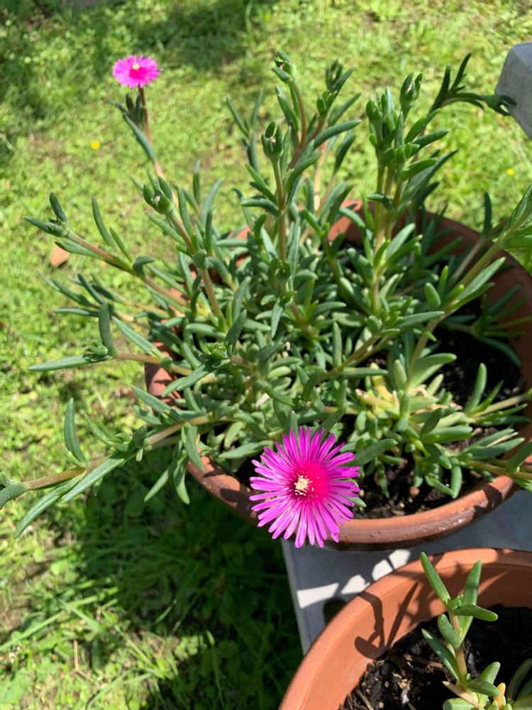 昨年挿し木にしたマツバギク開花しました。蛍光色っぽいキラキラしたこのピンク色が気に入ってます。オレンジや白、赤も欲しい。