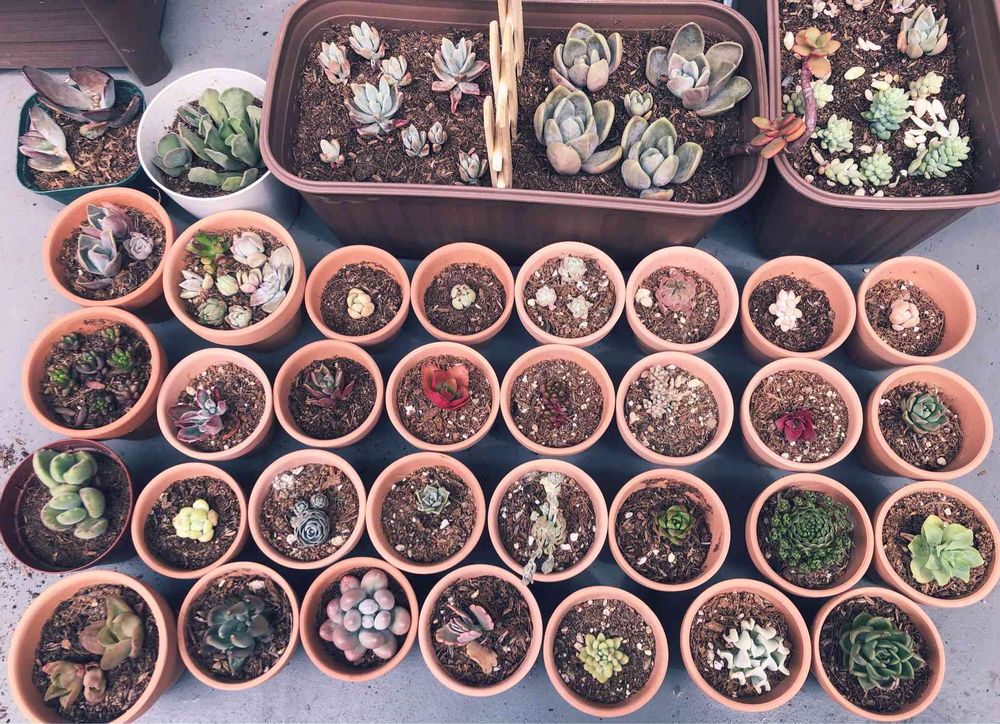 ちょっと鉢が足りなくて寄せ植え状態になってる子達もそのうち種類ごとに鉢に移したい、、