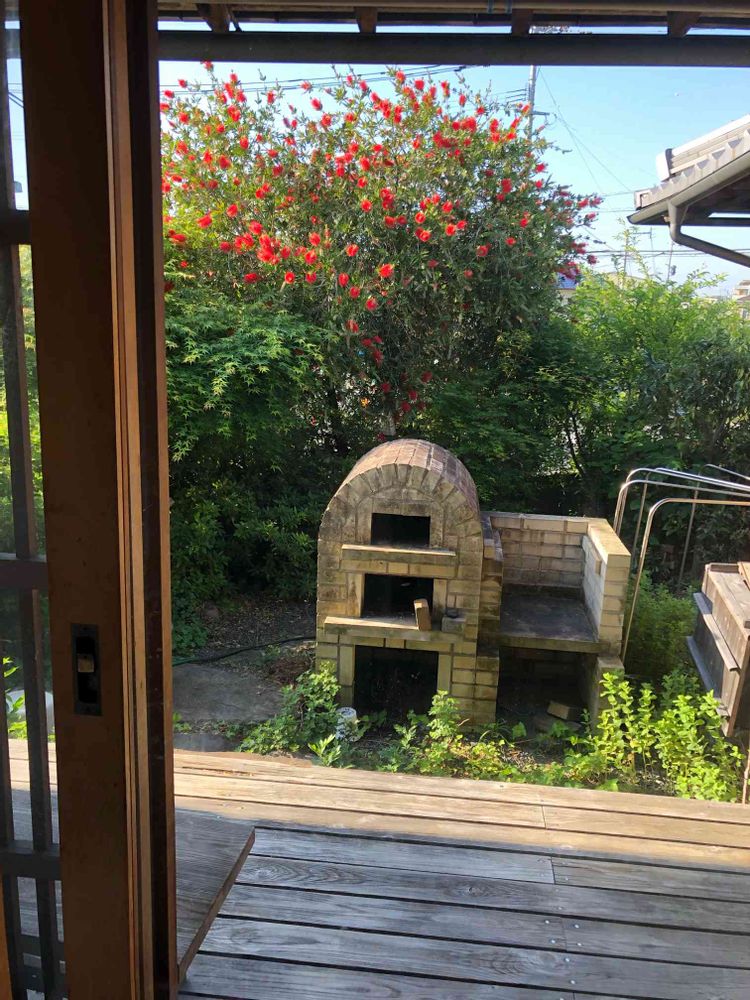 庭の石窯は、左は、ピザ🍕用、右は、ハム、ベーコンのスモーク窯ですよー。