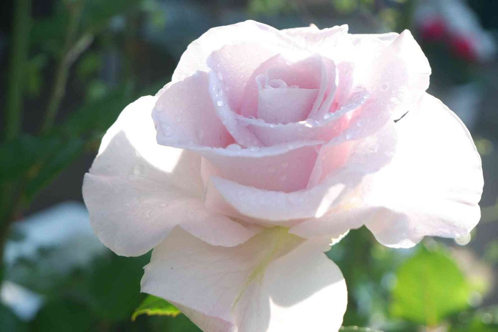 昨夜の雨粒が朝日を受けて輝いていました♪