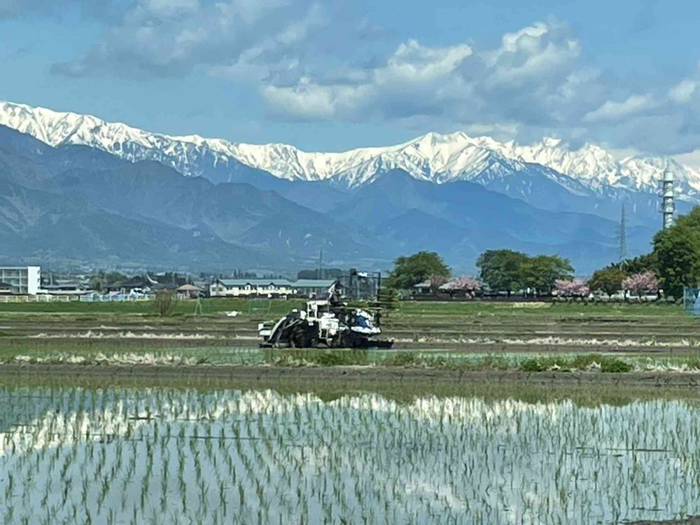 ニュースでも安曇野でお田植えって見た事ありますが長野県でも1番早いんですね🕊 ͗ ͗〰︎︎♡