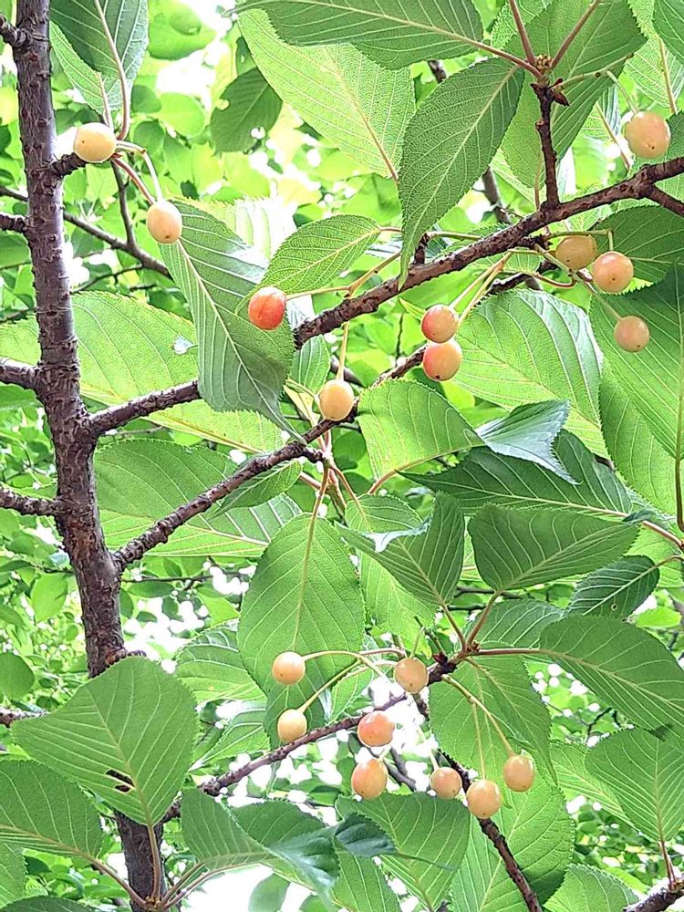 大きな木々を見上げて雄大さに感動するのも気分爽快で良いですが、見上げた先にこんなにかわいいさくらんぼ🍒があれば、ほのぼのして、良いですよね。