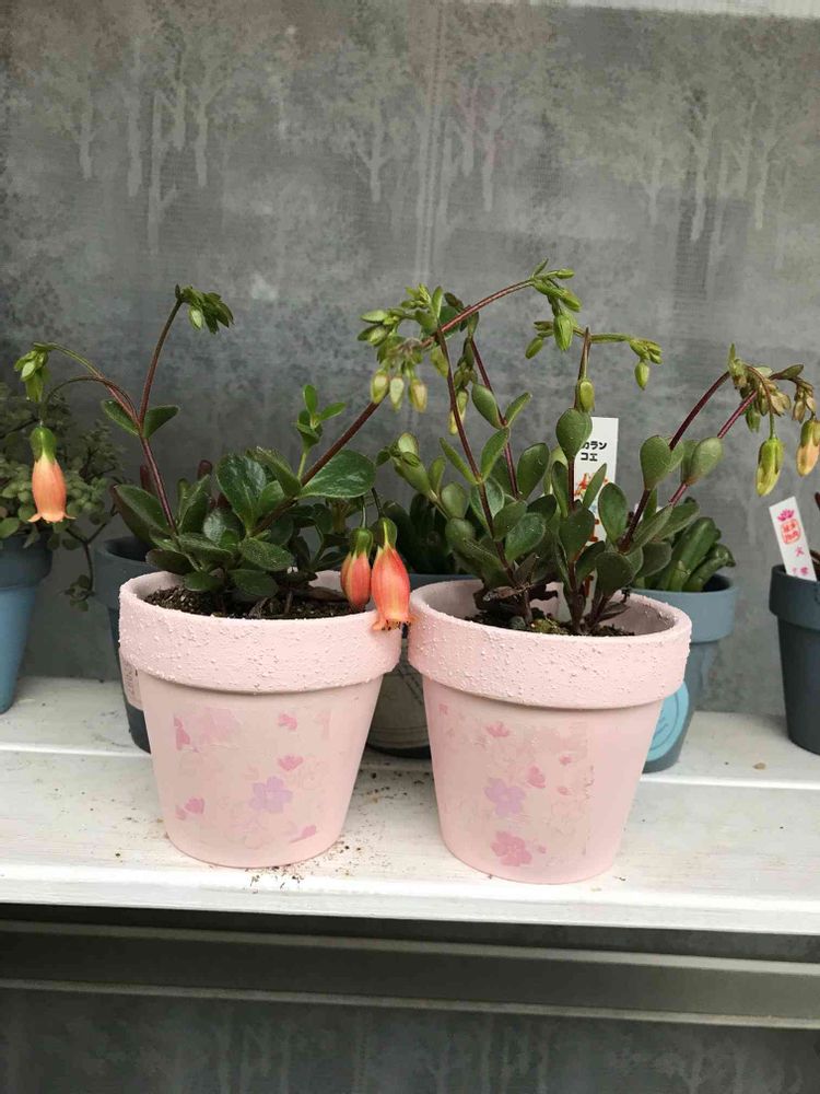 カランコエ紅提灯〜可愛いお花ぶらん✨としてますね〜🌸のメリ鉢もとっても可愛い❤