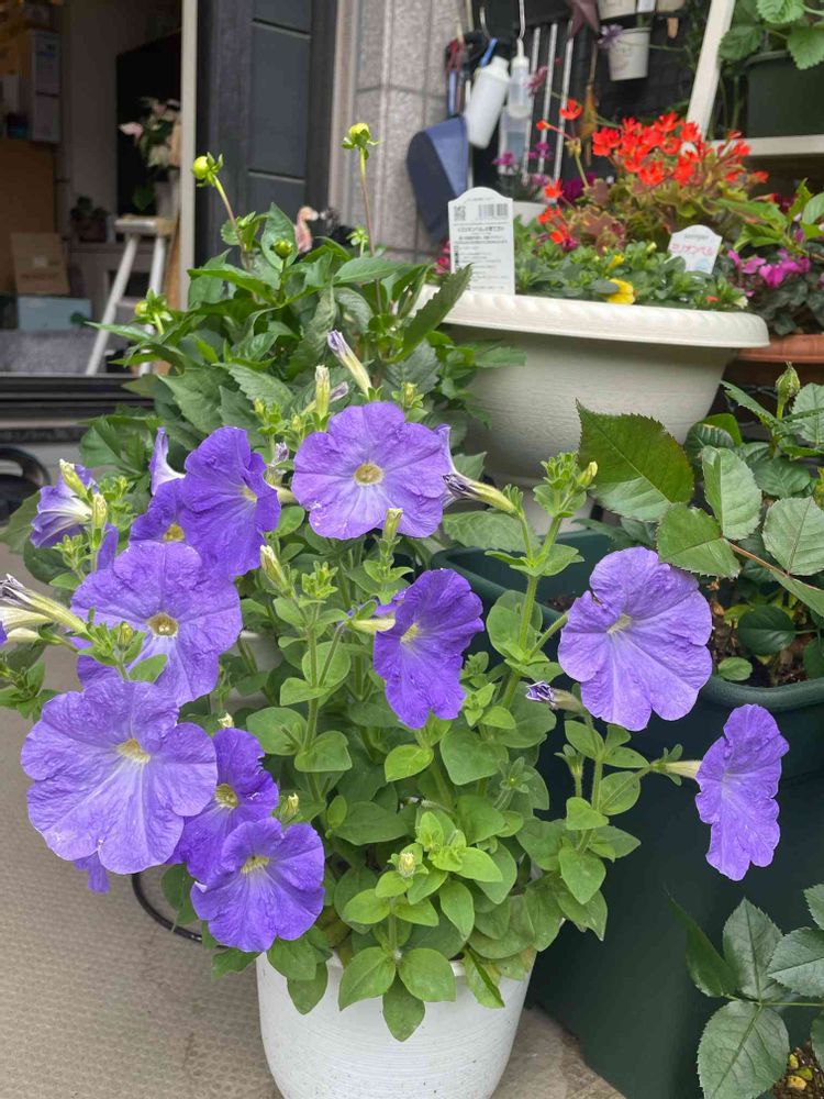 右上の赤いお花は、もみじ葉ゼラニウムです💕こちらも満開🥰