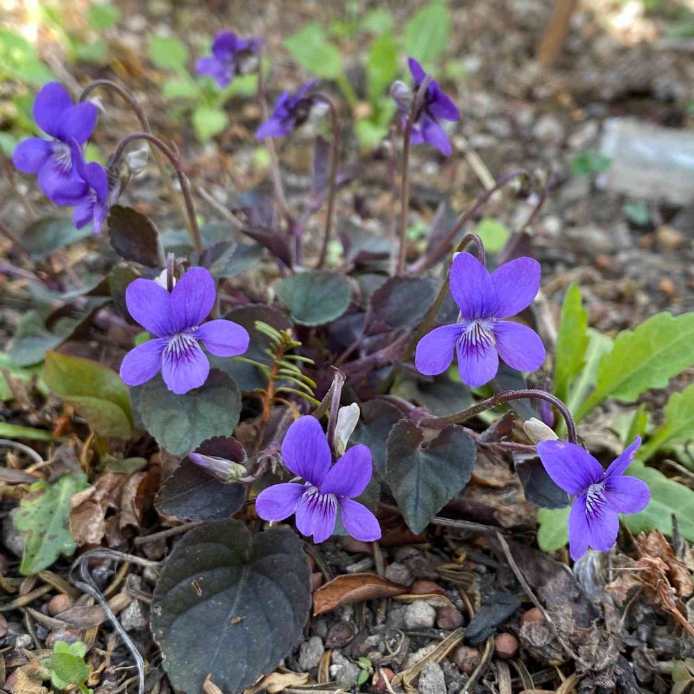 今年の黒葉スミレは元株からかなり離れた場所からも出てます。