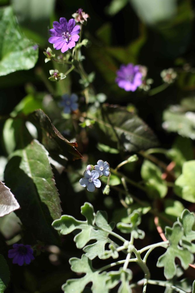 まぁ、どんぐりさんおはようございます〜ヽ(*・∀・*)ノお忙しいのでしょうか?大丈夫ですか?こちらこそぼちぼちマイペースの投稿にありがとうございます(´∀`*)コメントもとても嬉しいですよ〜(人゚∀゚*)お花は、上の色の濃いものがゲラニウムで、下の薄い顔色の悪い水色の子が、ルリソウです(*´σー`)エヘヘキュウリグサににていますよねw小さな小さなお花です。春は、このオンフォロデスの仲間、ムラサキ科のお花がとてもとても愛らしい季節です。ぜひぜひ見つけてくださいませ(・∀・)オンフォロデス・スタリ-アイズや、ブルンネラなどおすすめいたします〜(人゚∀゚*)(人゚∀゚*)良い週末をお過ごしくださいませ〜(*´ω`*)