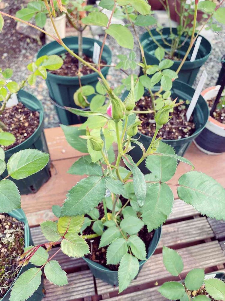 母の為に、挿し木しておいた鉢の🌹ブルーフォーユーに蕾ができていたのですが、うっすらピンク色になってきました。