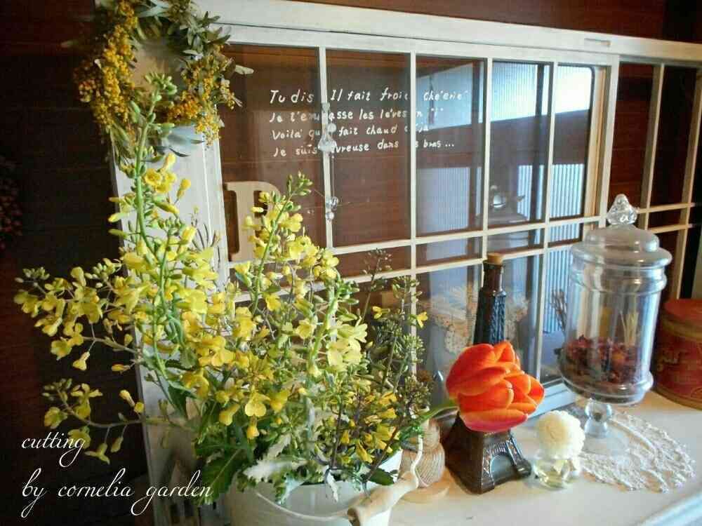 伸びてしまった葉ボタンは、強風には耐えられずに倒れてしまいがちなので、思い切ってカットしたら、玄関が明るくなったみたいでなかなかよかったです❤
