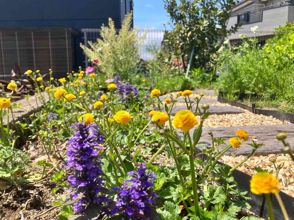 る〜∞さんの小さな庭,アジュガ チョコレートチップ,ラナンキュラスゴールドコインの投稿画像